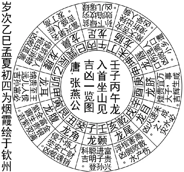 天迁圆图,按宫制顺逆,如大月初一日顺行,小月初一日逆行,按逐月月上起,初一数去,遇迁字,吉;遇颇、如、中,半吉;遇罪、失亡,俱凶。假如正月大顺行,初一日迁、吉,初二颇、如,初三日,罪、亡,初四日失、亡,初五,凶、亡;初六,迁、中、初七,又值迁、吉,此大月顺数也。余皆仿此
